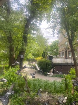 Квартира с хорошей планировкой, комнаты на разные стороны. Вид из окон во двор, на палисадник, , очень красивый - тишина и покой обеспечены. Первый этаж высокий - никто не заглянет.