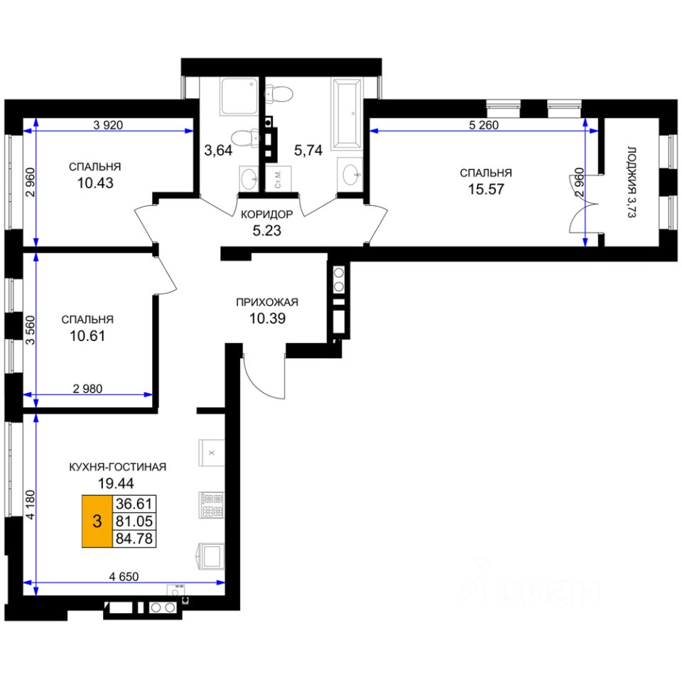 Продаётся 3-комнатная квартира в строящемся доме (Дом 1 (1 очередь)), срок сдачи: IV-кв. 2025, общей площадью 84.78 кв.м., на 4 этаже. Новый жилой комплекс "Включи" от застройщика "СпецСтройКубань" расположен в г. Гурьевск в районе Гурьевского шоссе.