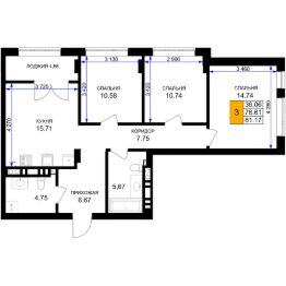 Продаётся 3-комнатная квартира в строящемся доме (Дом 1 (1 очередь)), срок сдачи: IV-кв. 2025, общей площадью 81.17 кв.м., на 7 этаже. Новый жилой комплекс "Включи" от застройщика "СпецСтройКубань" расположен в г. Гурьевск в районе Гурьевского шоссе.