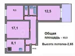Общая площадь: 63,5 кв.м.