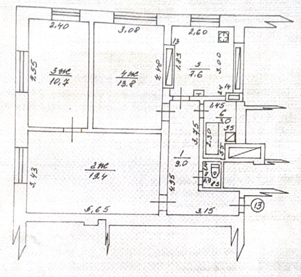 • Комнаты: 19,4 м² + 13,8 м² + 10,7 м²