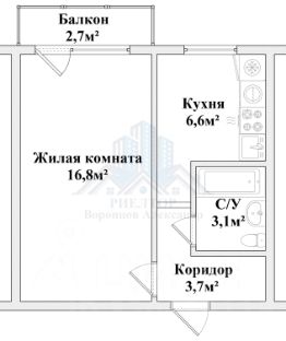 Общая площадь - 32,9 м², планировка: