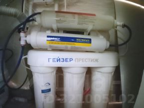 На кухне установлен кухонных гарнитур с доводчиками, подключена система очистки воды Гейзер Престиж с обратным осмосом, поэтому всегда есть чистая питьевая и минерализованная вода. Из техники на кухне остается газовая поверхность, духовой электрический шкаф, микроволновая печь, холодильник.