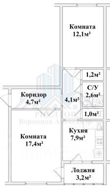 • Жилые комнаты: 17,4м² и 12,1м²;