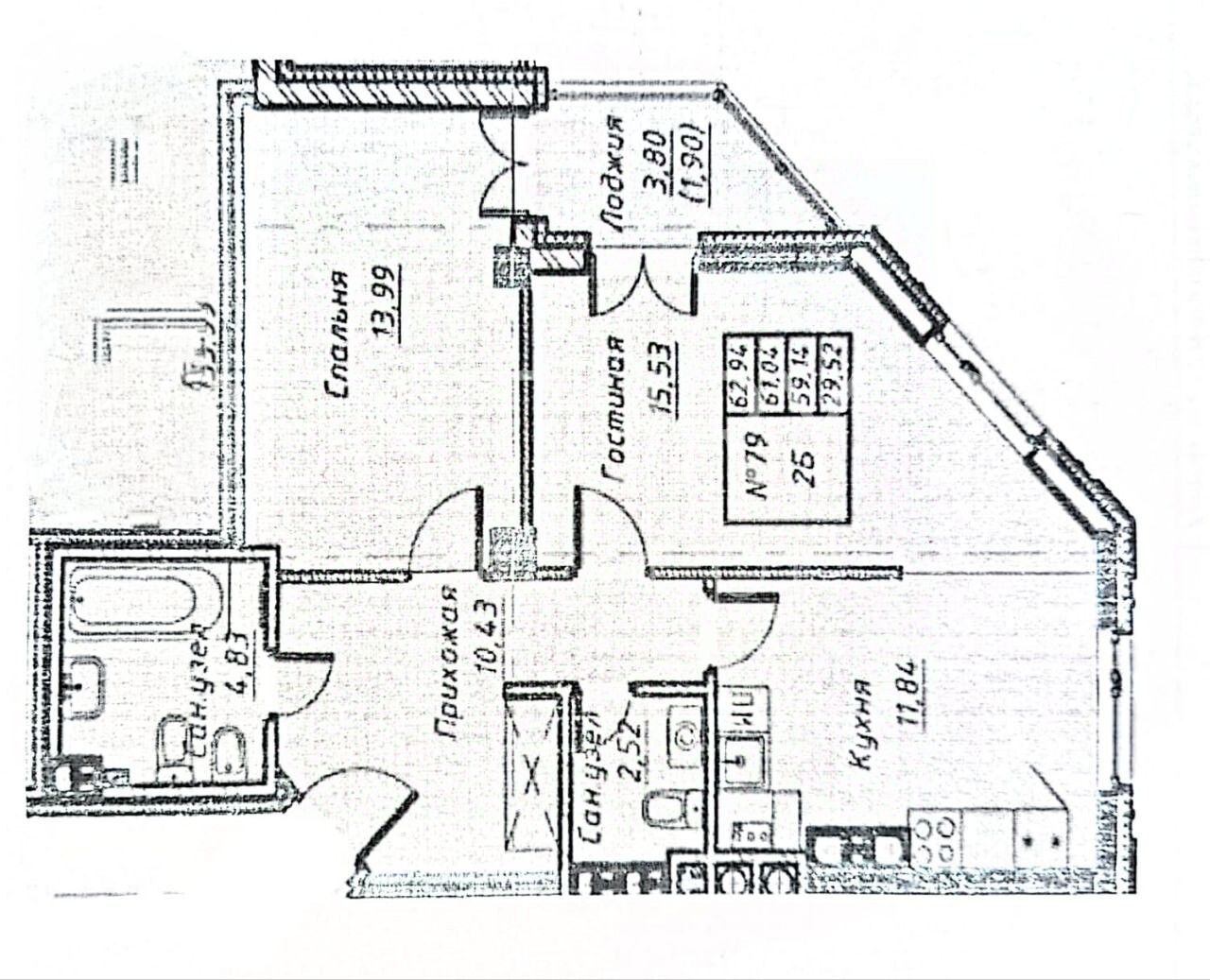 Oбщaя площaдь квaртиpы 62,9 кв. м.