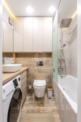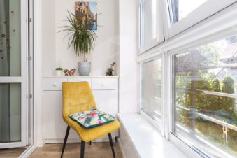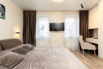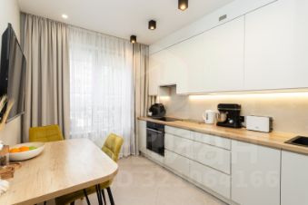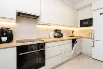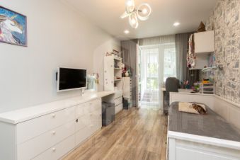 В квартире останется вся встроенная мебель, выполненная из МДФ с крашенной отделкой, а также современная система Blum для удобства использования. В качестве бонуса покупателю предоставляется обустроенный подвал площадью 10 кв.м. с отделкой и стеллажами.