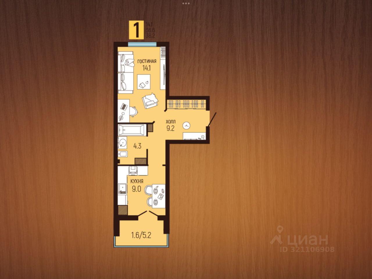 Продается стильная однокомнатная квартира в современном доме на бульваре Любови Шевцовой, 51, в Калининграде. Общая площадь квартиры составляет 43,4 кв. м, жилая площадь — 14,1 кв. м, а кухня — 9 кв. м. Квартира расположена на 3 этаже 17-этажного дома, построенного в 2019 году. Высота потолков — 2,7 метра. Из окон открывается вид как на улицу, так и во двор.