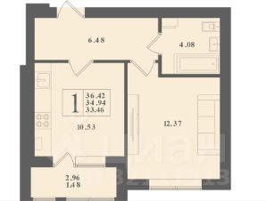 - кухня 10,53м2 с выходом на лоджию 2,96м2