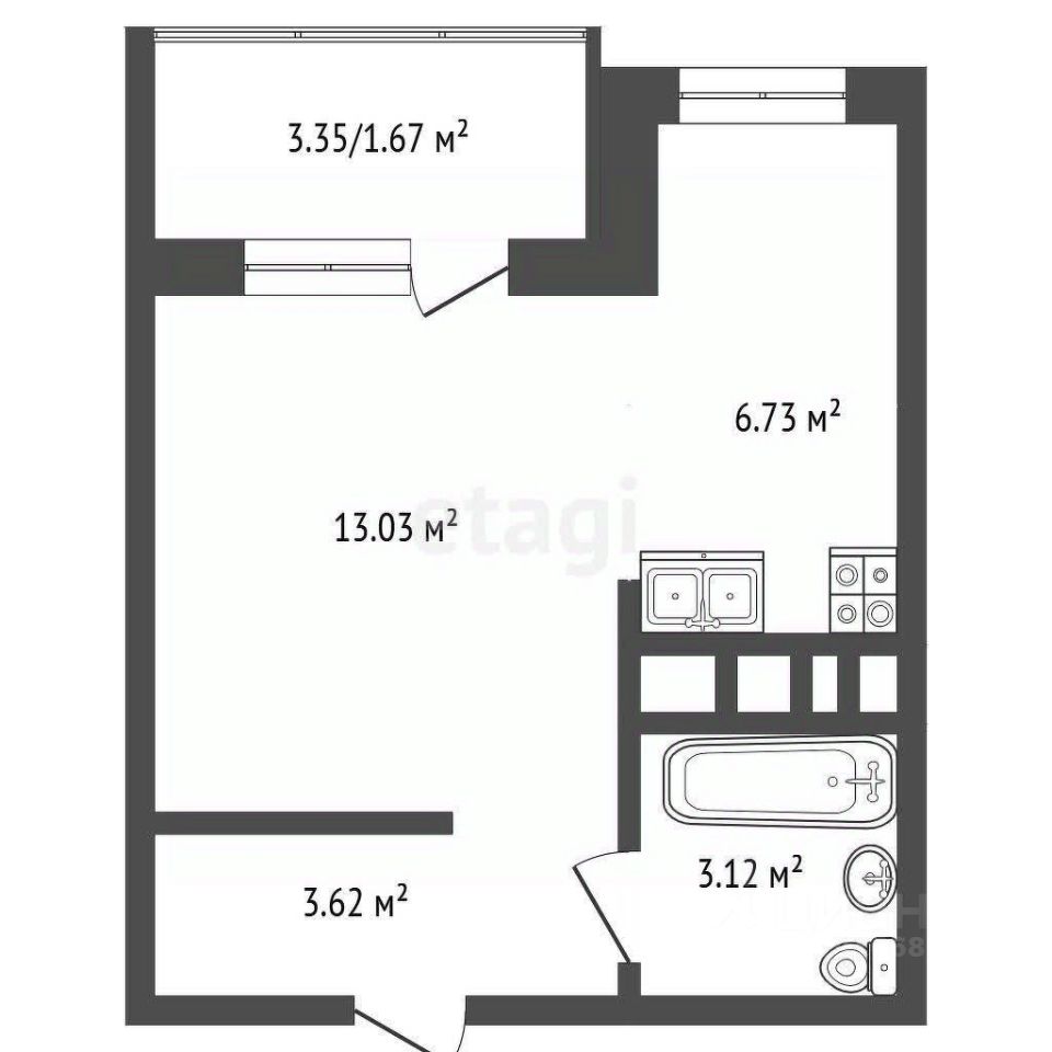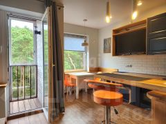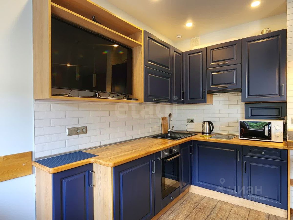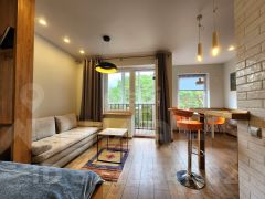 Студия полностью готова к заселению: современный ремонт в светлых тонах, мебель и техника остаются новому владельцу.