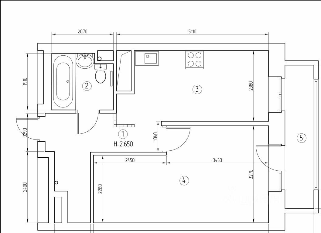 Общая площадь квартиры - 38