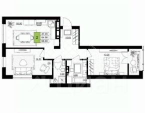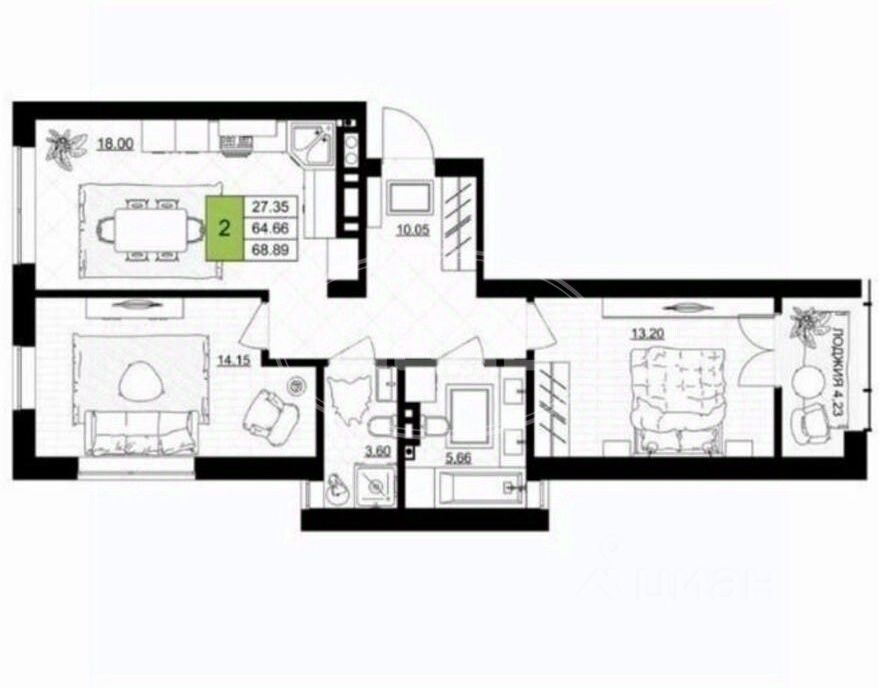 Квартира расположена на 7 этаже современного кирпичного дома 2027 года постройки. Высота потолков 3 метра, общая площадь — 68,89 кв. м, из которых 27,35 кв. м — жилая площадь. Две изолированные комнаты с площадями 14,15 и 13,20 кв. м идеально подойдут для семьи. Просторная кухня площадью 18 кв. м станет местом для кулинарных экспериментов и семейных ужинов.