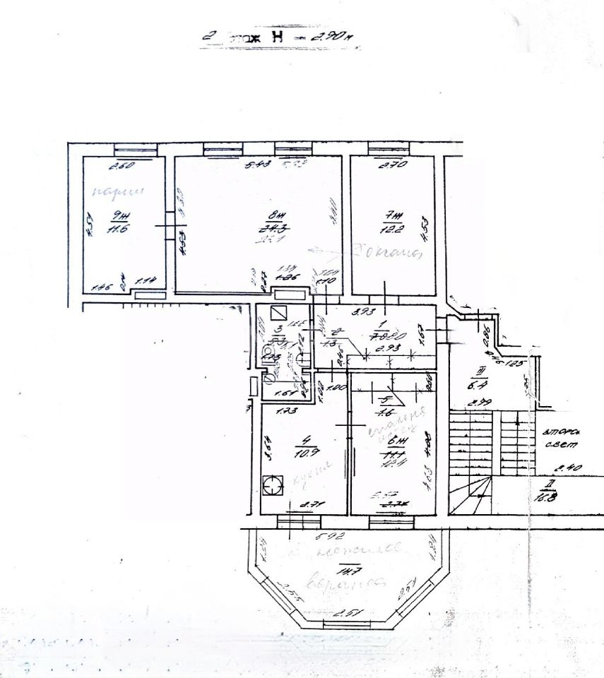 Квартира находится на втором этаже двухэтажного кирпичного дома и имеет общую площадь 83,3 м² (из них 61,3 м² — жилые комнаты). Высота потолков — 2,9 метра, что создаёт ощущение простора и света!