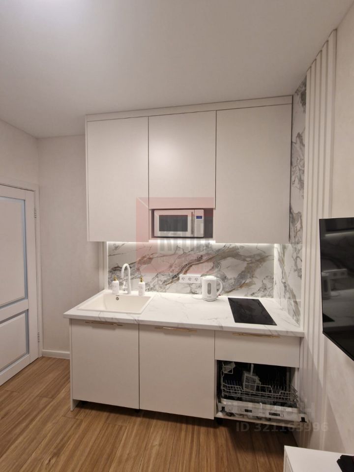 Общая площадь: 30 кв.м. (кухня-гостиная 8 кв.м. + спальня 10,9 кв.м. + ванная).