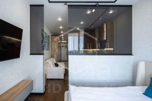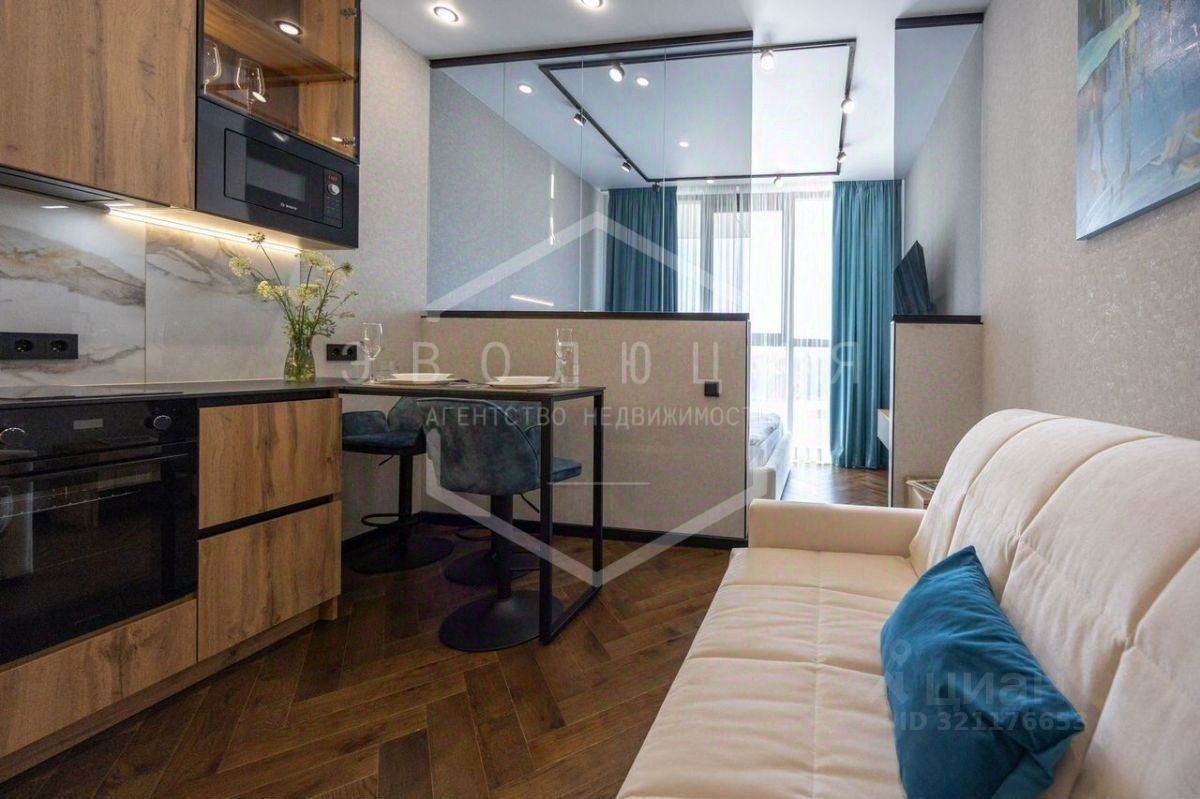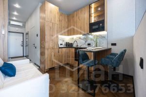 Общая площадь студии 29.1 кв.м. Планировка студии функциональна и продумана до мелочей, что обеспечивает достойное и комфортное проживание и отдых. В квартире выполнен дизайнерский ремонт в эко-стиле. Укомплектована всей необходимой мебелью, техникой и текстилем все абсолютно новое. В квартире использован особый ритм остекления: максимальные площади стеклянных поверхностей.