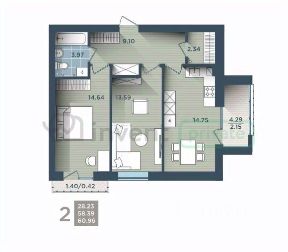 Эксклюзивное предложение! Продаётся уютная квартира в ЖК "Тихий Дом" от нашего застройщика ООО "СЗ "Интер Инвест". Все виды расчетов: рассрочка, семейная ипотека, маткапитал, ипотека БЕЗ ПВ! О квартире:• Серый ключ, создайте уникальный дизайн с нуля под свой вкус; • Общая площадь - 61.4 м.кв., кухня - 14.75 м.кв., спальни - 14,64 м.кв. и 13,59 м.кв., просторная лоджия - 4,29 м.кв.; • Автономное отопление — сами регулируете температуру и платите меньше; • Тишина гарантирована (толстые стены 400 мм); • Панорамное остекление — много света и уютная атмосфера; • Ремонт от застройщика — возможность сделать качественный ремонт от застройщика по специальной цене; • Хозяйcтвeнные кладoвые для каждoй квapтиры. О доме:• Дом сдан! Не ждите стройку - получайте ключи и создавайте уют! • Закрытая охраняемая территория; • Свой паркинг и магазины в шаговой доступности; • Современные детские и спортивные площадки.О районе:• ЖК находится в Центральном районе города Калининград, зелёный и спокойный район рядом с Амалиенау и парком Теодор Кроне, рядом пр-т Мира, ул. Красносельская; • Вся инфраструктура рядом: школы, сады, магазины, аптеки; • Удобная транспортная доступность. Квартир осталось совсем немного, приглашаем на просмотр! Звоните и выбирайте удобное время для встречи! Объект 229411