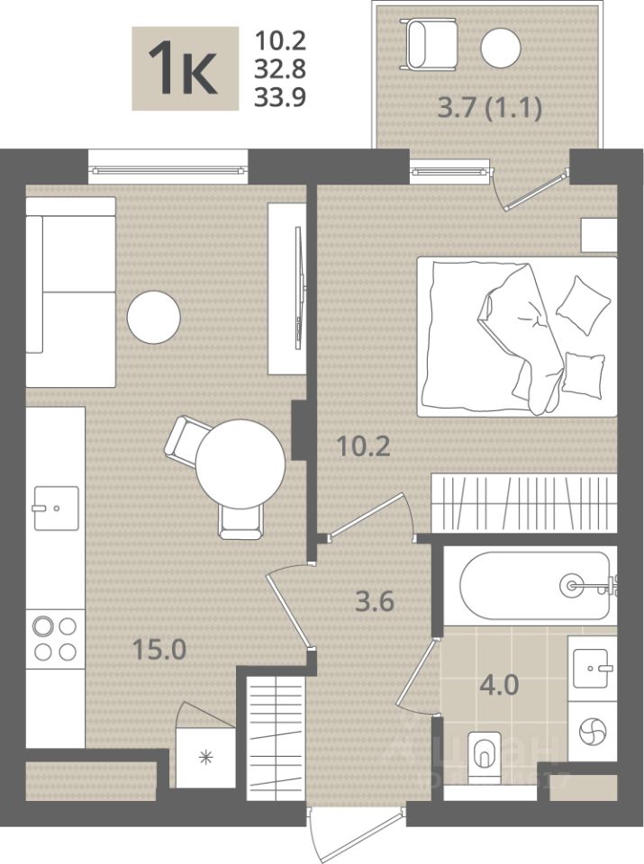 Продаётся 1-комнатная квартира в строящемся доме (Дом 1.1), срок сдачи: IV-кв. 2026, общей площадью 33.9 кв.м., на 3 этаже. Новый жилой комплекс "МОре" от Строительной компании "Меркурий" расположен по адресу: Калининградская область, г. Пионерский, пос. Рыбное.