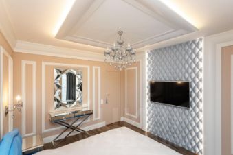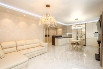 В квартире сделан дорогой дизайнерски ремонт с эксклюзивными материалами, мебелью и техникой , в квартире практически не жили