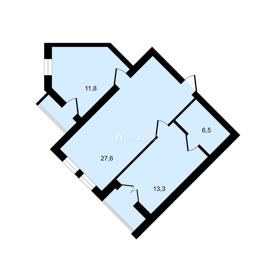 Общая площадь квартиры составляет 58,2 кв. м, из которых 38,9 кв. м — жилая площадь.