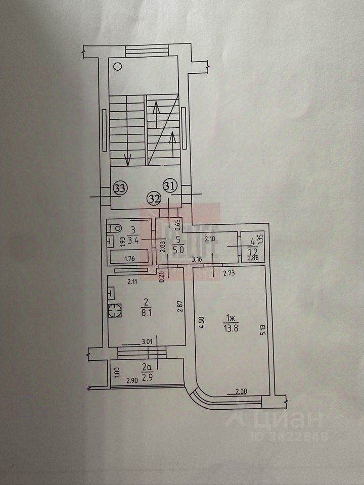 О КВАРТИРЕ: Общая площадь 31.5 кв.м., кухня 8.1 кв.м., комната 13.8 кв.м., лоджия 2.9 кв.м.,