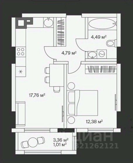 - Общая площадь 42,21 м2 .
