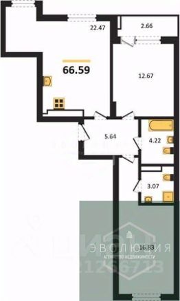 Квартира: 2 к 66,59 кв.м., 4 этаж в комплексе История, 1 очередь, корп.1, сдача: 4кв. , этажей: 9, адрес Калининград г., Старшины Дадаева ул., д. 55 корп 1, Застройщик: КалининградСтройИнвест.