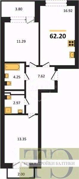 Квартира: 2 к 62,20 кв.м., 4 этаж в комплексе Клевер, 1 очередь, корп.5, сдача: 4кв. , этажей: 5, адрес Пионерский г., , Застройщик: КалининградСтройИнвест.