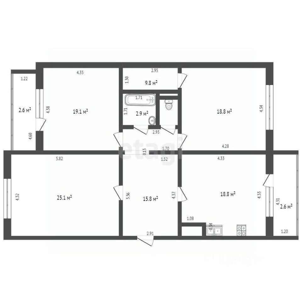 Продаётся трёхкомнатная квартира с большой кухней и просторными комнатами, расположенная на 3 этаже по адресу ул. Согласия, дом 20. О КВАРТИРЕ: Уютная квартира 105,4 м2 с очень функциональной изолированной планировкой обеспечит комфортную жизнь вашей семье! — Просторная кухня 18,8 м2, три жилые комнаты 18,6 м2, 25,1 м2 и 19,1 м2, прихожая - холл 15,8 м2, санузел раздельный, кладовая-гардеробная 3,8 м2, имеются две застеклённые лоджии по 2,6 м2. — Квартира с хорошим ремонтом в тёплых тонах, отопление центральное, имеются счётчики. Подъезд чистый, с тихими и доброжелательными соседями. О ДОМЕ: - панельный 9-ти этажный дом 2002 года постройки; - Имеется пассажирский лифт ; - В пешей доступности вся необходимая инфраструктура: Гимназия, детские сады, сетевые супермаркеты, аптеки, поликлиники, ТЦ "Балтийская галерея", Дворец спорта "Янтарный", Бауцентр, рынок Сельма; - Во дворе дома есть детская площадка. - До остановки "Улица Согласия" 2 минуты ходьбы. Этажи - Агентство недвижимости 1 в России по версии Сбербанка!* Работаем со всеми видами сертификатов, с материнским семейным капиталом и военной ипотекой. Проводим сделки любой сложности, в том числе межрегиональные. Юридическое сопровождение под ключ. Безопасные расчёты по сделкам с использованием самых надёжных современных сервисов Банков.