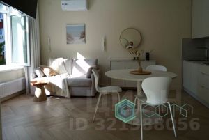 Общая площадь с учётом лоджии 45.4 кв.м, в апартаментах сделан дизайнерский ремонт: кварц-виниловое напольное покрытие, стены с покраской. Встроенная кухня, техника, мебель, заказанная в Европе, продается вместе с квартирой и входит в стоимость. Полы с подогревом.