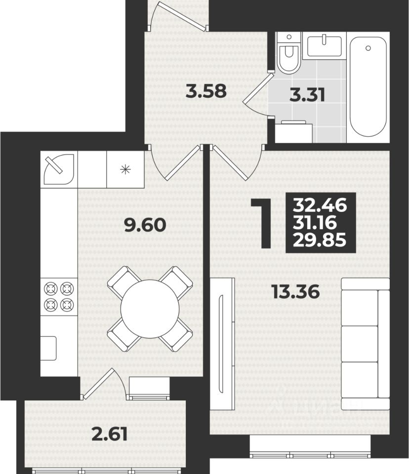 Однокомнатные, двухкомнатные и трёхкомнатные квартиры с панорамными окнами, лоджиями и отделкой "белый ключ". Квартиры с просторными кухнями-гостиными.