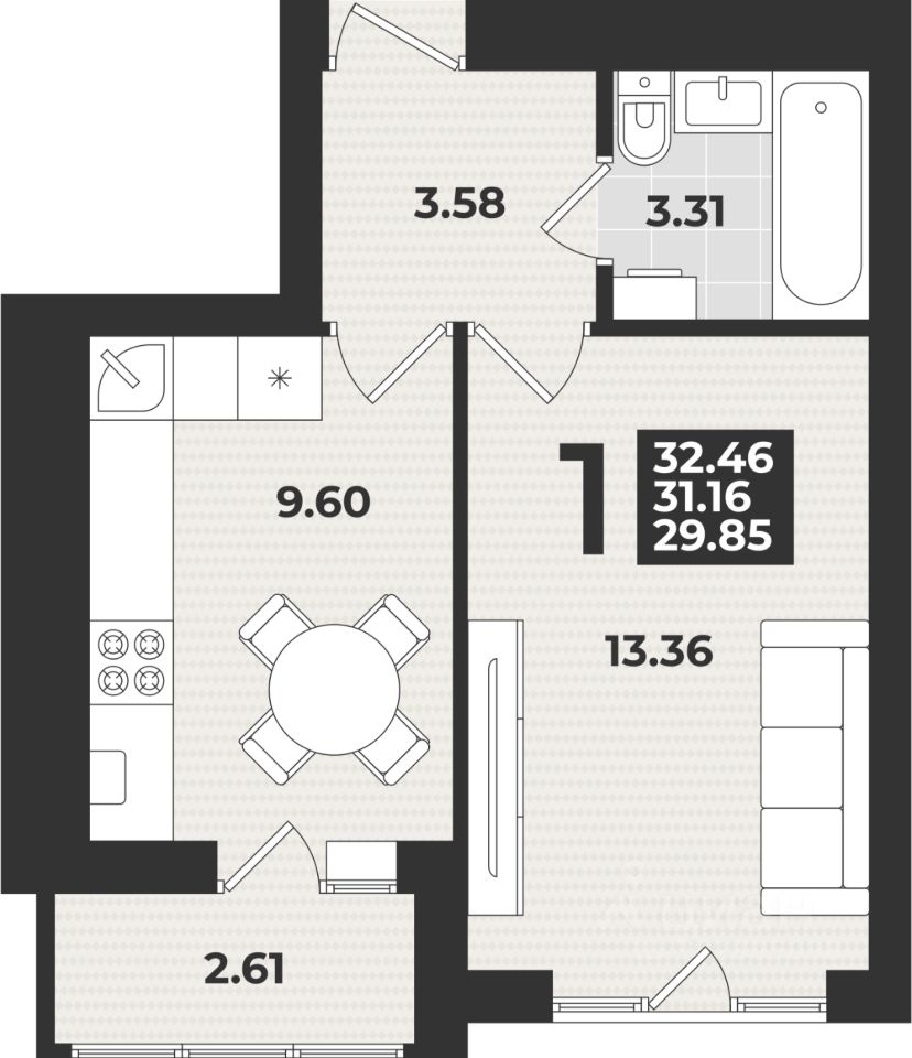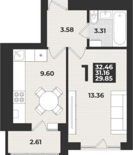 Однокомнатные, двухкомнатные и трёхкомнатные квартиры с панорамными окнами, лоджиями и отделкой "белый ключ". Квартиры с просторными кухнями-гостиными.