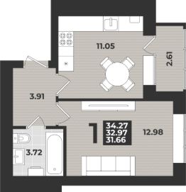 Общая площадь34,27 м²