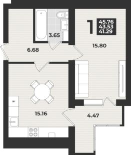 Однокомнатные, двухкомнатные и трёхкомнатные квартиры с панорамными окнами, лоджиями и отделкой "белый ключ". Квартиры с просторными кухнями-гостиными.