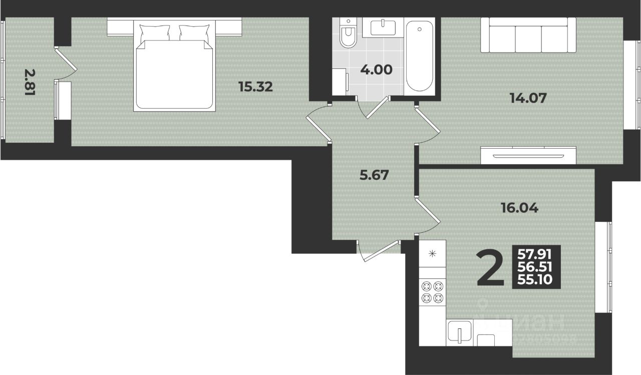 Однокомнатные, двухкомнатные и трёхкомнатные квартиры с панорамными окнами, лоджиями и отделкой "белый ключ". Квартиры с просторными кухнями-гостиными.