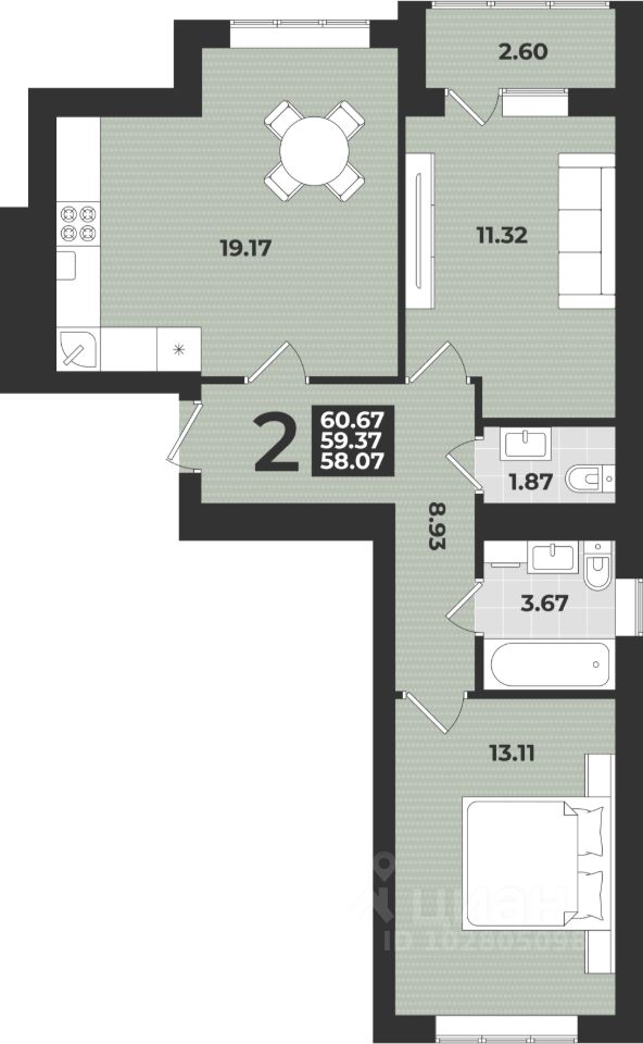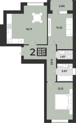 Однокомнатные, двухкомнатные и трёхкомнатные квартиры с панорамными окнами, лоджиями и отделкой "белый ключ". Квартиры с просторными кухнями-гостиными.