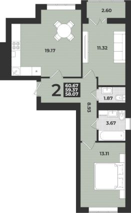 Общая площадь60,67 м²