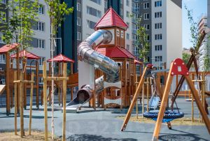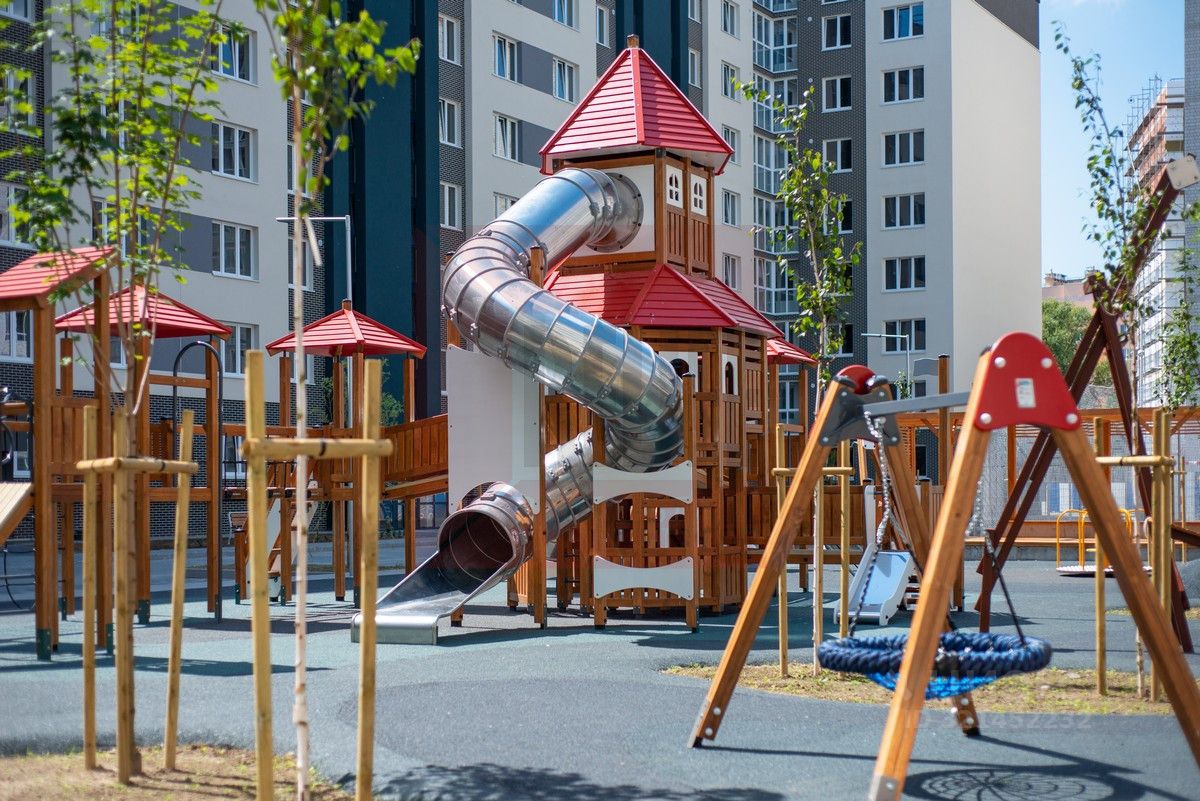 На огороженной и охраняемой территории организованы детские игровые комплексы с зонами для отдыха. Предусмотрены гостевые автостоянки, а также места для выгула собак и пешеходный бульвар. Появятся современные уличные тренажеры, спортивные площадки. В непосредственной близости расположены детские сады, школа, продовольственные магазины, парковая зона с озерами, городской пляж.