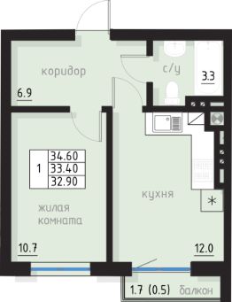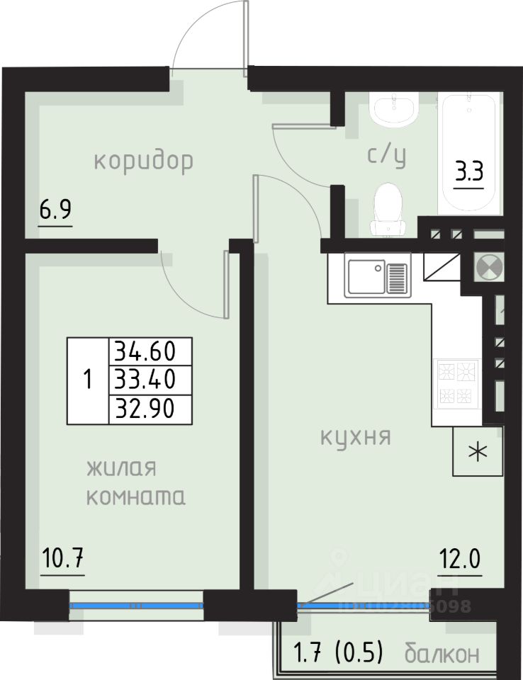 Продаётся 1-комнатная квартира в строящемся доме (Дом 1), срок сдачи: IV-кв. 2026, общей площадью 34.6 кв.м., на 4 этаже. Новый жилой комплекс "Дивный дом" от застройщика "Модуль-Стройград" расположен по адресу: Калининградская обл., г. Светлогорск, ул. Новая.