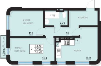 53,2 м²