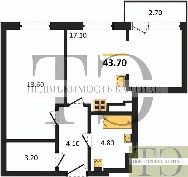 Квартира: 1 к 43,70 кв.м., 2 этаж в комплексе Симфония моря, 1 очередь, корп.1, сдача: 1кв. , этажей: 5, адрес Пионерский г., Прибрежная ул., д. 23 корп 1, Застройщик: Модуль-Стройград.