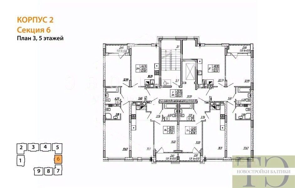 Квартира: 1 к 38,11 кв.м., 5 этаж в комплексе Seven, 2 очередь, корп.2, сдача: 4кв. , этажей: 9, адрес Калининград г., Батальная ул., , Застройщик: КалининградСтройИнвест.