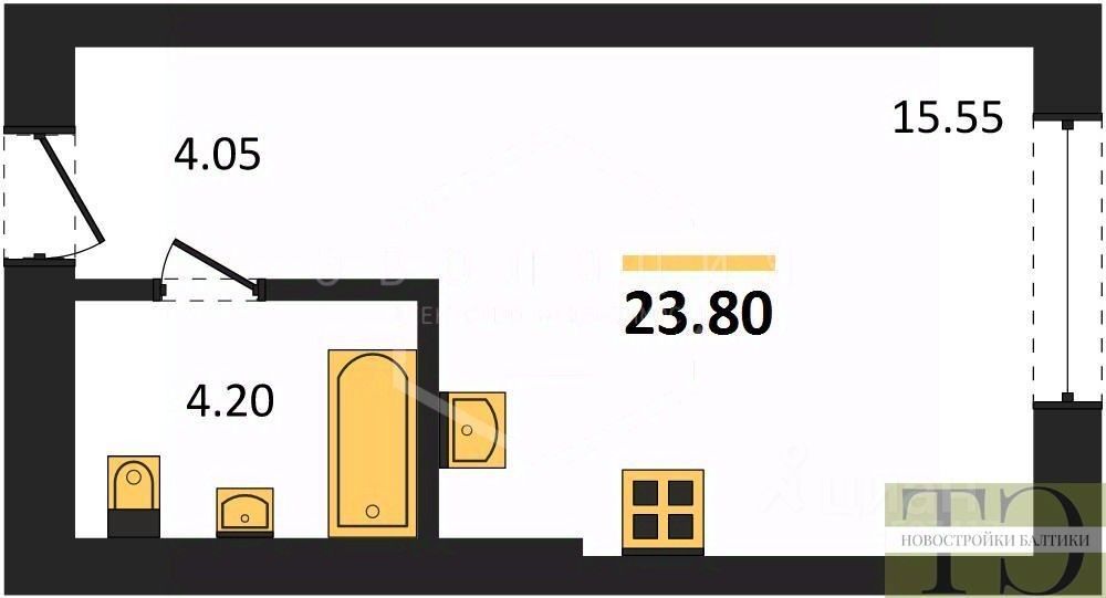 Студия: 23,80 кв.м., 4 этаж в комплексе Клевер, 1 очередь, корп.5, сдача: 4кв. , этажей: 5, адрес Пионерский г., , Застройщик: КалининградСтройИнвест.