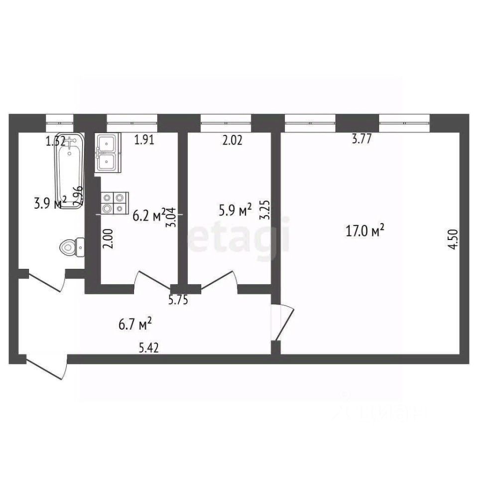 - ванная комната с совмещенным с/у - 3.9 кв.м.