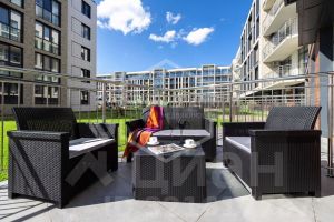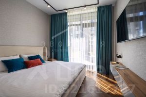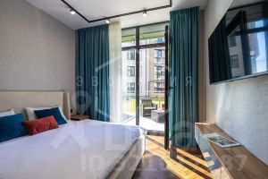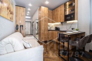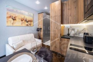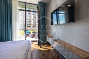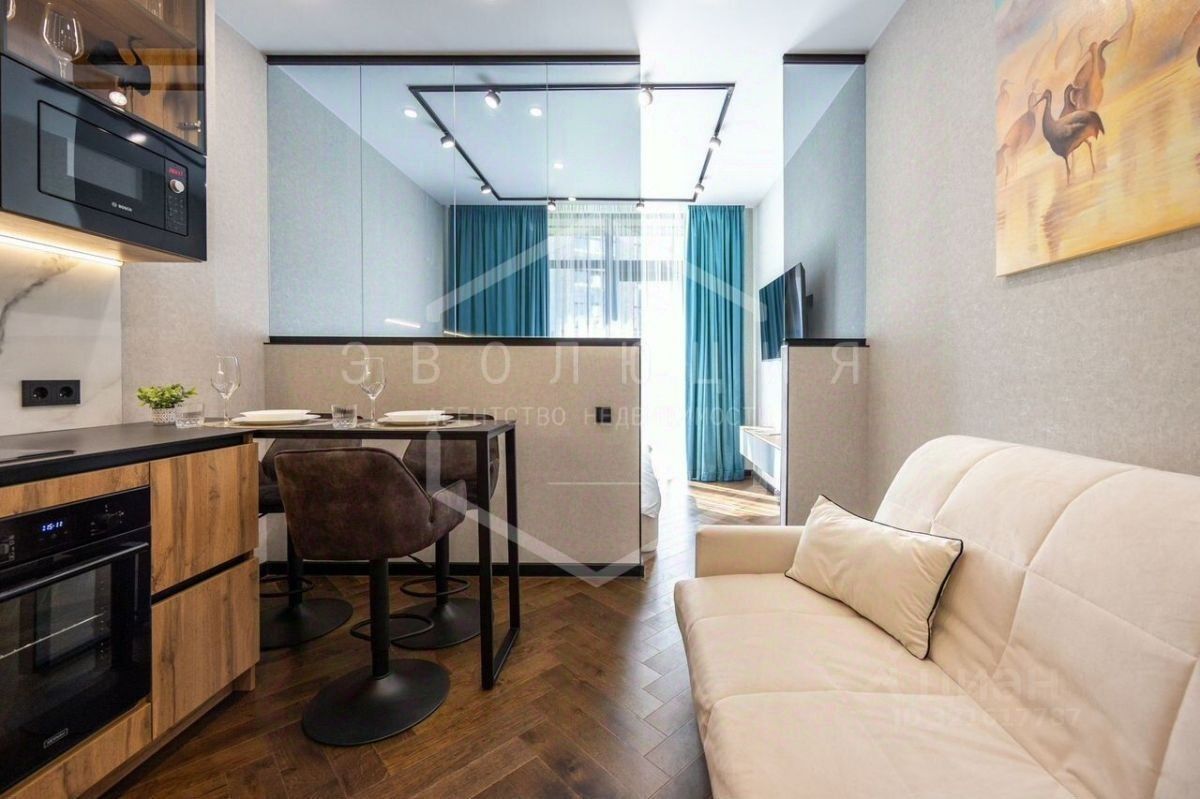 Общая площадь студии 28.6 кв.м. Планировка студии функциональна и продумана до мелочей, что обеспечивает достойное и комфортное проживание и отдых. Особое внимание заслуживает терраса с организованной лауж-зоной. В квартире выполнен новый дизайнерский ремонт в эко-стиле. Укомплектована всей необходимой мебелью, техникой и текстилем все абсолютно новое. В квартире использован особый ритм остекления: максимальные площади стеклянных поверхностей. Автономное отопление.