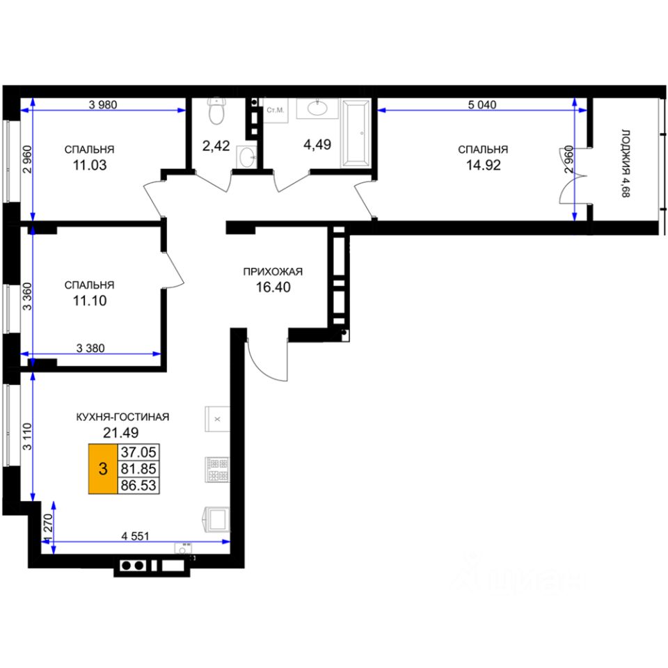 Продаётся 3-комнатная квартира в строящемся доме (Дом 4 (1 очередь)), срок сдачи: I-кв. 2026, общей площадью 86.53 кв.м., на 6 этаже. Новый жилой комплекс "Включи" от застройщика "СпецСтройКубань" расположен в г. Гурьевск в районе Гурьевского шоссе.