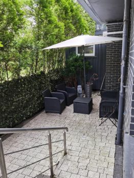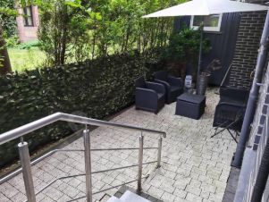 — Панорамные окна, вид на соседний участок и милые немецкие домики. Боковой вид на море!