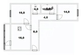 Квартира расположена на 8-ом этаже, 8-ми этажного кирпичного дома, общая площадь 64 кв.м.