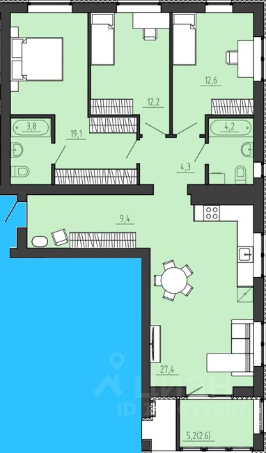 Продаётся 3-комнатная квартира в строящемся доме (Дом 3), срок сдачи: I-кв. 2026, общей площадью 98.2 кв.м., на 2 этаже. Новый жилой комплекс "Дома у сада" от Специализированного застройщика "А Плюс" расположен в г. Калининград на ул. Толстикова.