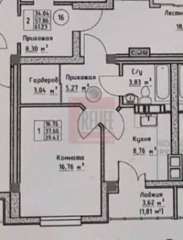 Общая площадь квартиры 42 кв. м. Просторная комната 16,76 кв. м, функциональная кухня-гостиная 8,76 кв. м, гардеробная комната 3,04 кв. м, обширная лоджия 3,62 кв. м для приятных вечерних посиделок с прекрасным обзором окрестностей. В квартире выполнен качественный евроремонт.