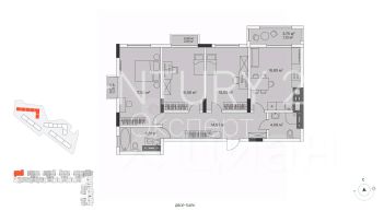 Площадь: 88,42 м². Два санузла, два балкона и шикарная лоджия. Кухня очень просторная. Три раздельные комнаты.