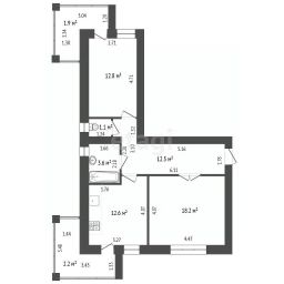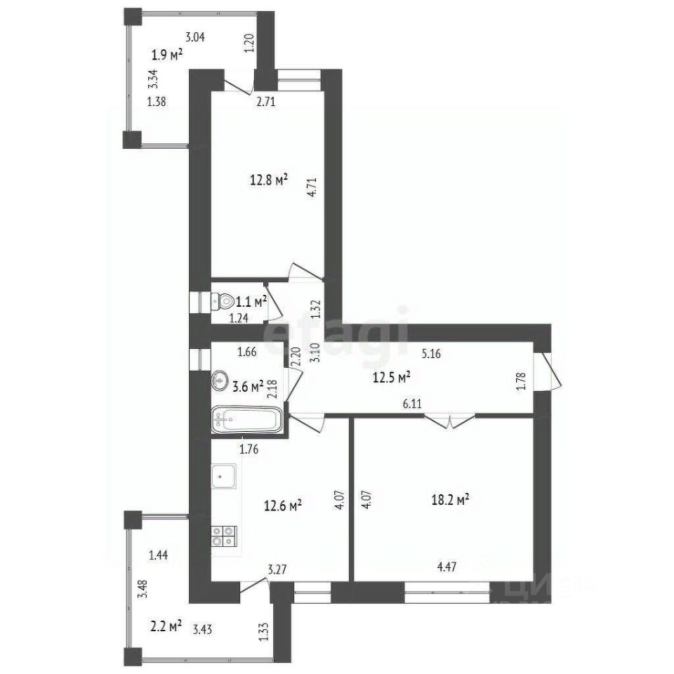 общая площадь квартиры без учёта балконов - 60.8 кв.м.